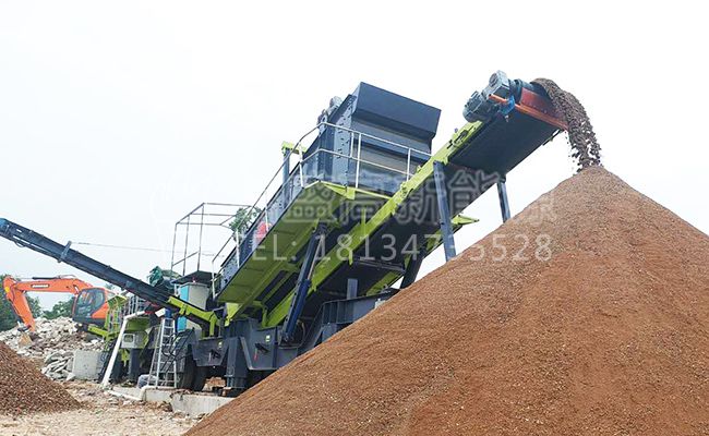 鄭州鼎盛WAS340輪胎式移動篩分站對建筑垃圾再生骨料篩分現(xiàn)場